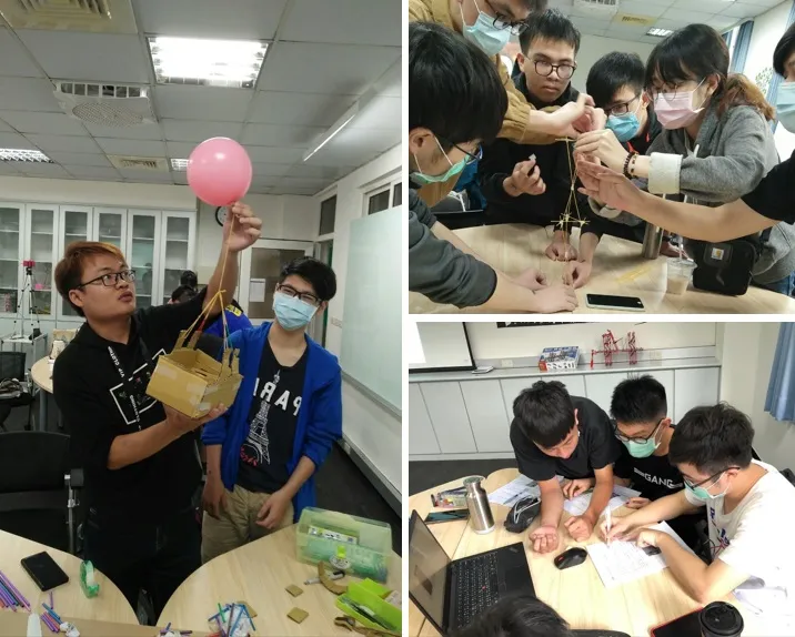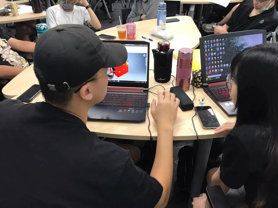 特色1.有別於一般傳統教室,教室桌椅採移動組合式,可依課堂需求進行調整,四周環繞式螢幕皆可無線連線投影使用,也可使用廣播功能讓每台螢幕播放,有效提升教學環境。2.互動教室可運用於院內各系實作體驗課程使用,透過教學互動方式,提升學習成效。工程力學互動教室營造工程VR與AR之運用創新設計思考AR、VR教學分組互動討論分組實作體驗